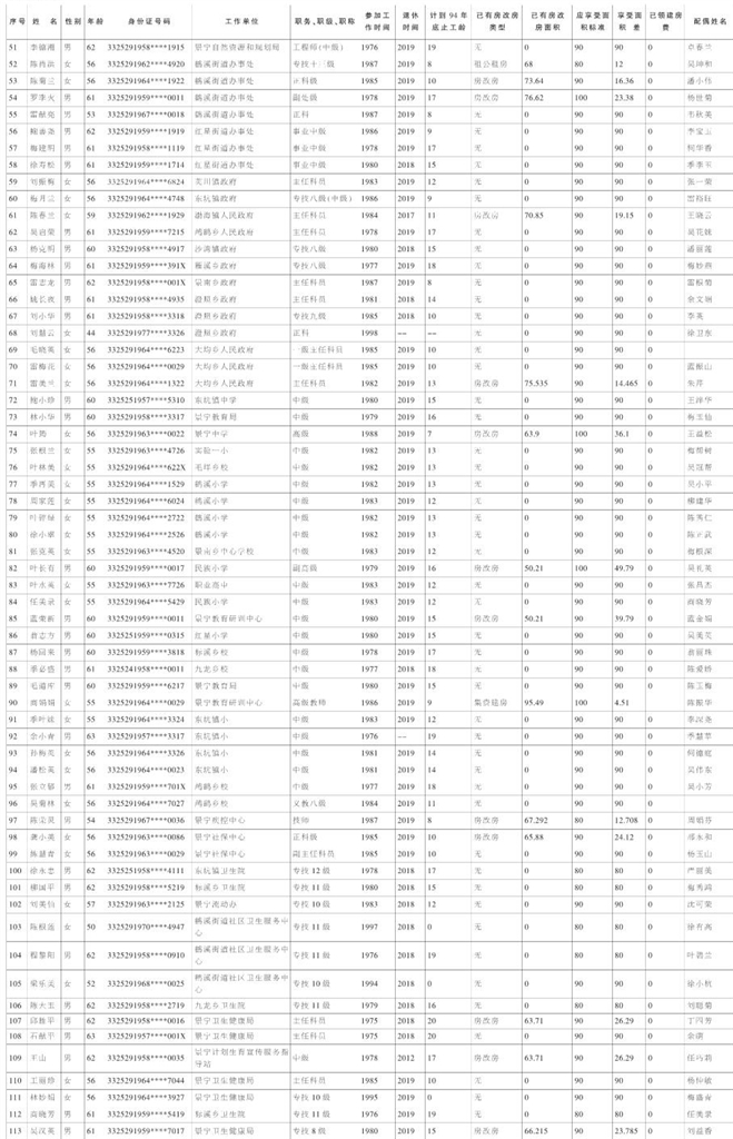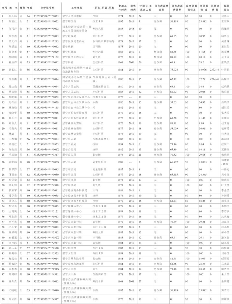 根据《景宁畲族自治县行政事业单位干部职工住房分配货币化实施办法》(景政发[2012]43号)和《景宁畲族自治县住房和城乡建设局关于发放行政事业单位退休人员住房补贴的通知》文件精神,由申请人申请,申报单位及主管部门初审,经县人力社保局、县委组织部、县房改办等部门层层审核。现将审核后的名单予以公示,公示期为10天,在公示期间内请群众给予监督,如有异议或发现问题,请以书面的形式向县住房和城乡建设局住房管理科(县房改办)反映。 联系电话:0578-5082436,地点:县住房和城乡建设局207室。