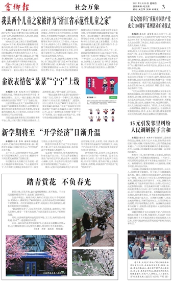 本报讯(通讯员 严霖鑫)近日,省民政厅公布了2020年度“浙江省示范性儿童之家”名单,我县城南社区儿童之家、民族小学儿童之家榜上有名。