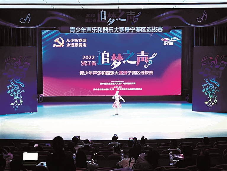 日前,2022浙江省“追梦之声”青少年声乐和器乐大赛(景宁赛区)选拔赛在县文化中心小剧场举行。来自全县41名参赛选手分组展开角逐,他们自信满满、各显其能,在舞台上尽情释放风采与魅力。据了解,此次选拔赛评选出了4位晋级选手参加全市复赛,通过复赛的选手将参加全省总决赛。 (记者 彭陈瑶 摄)