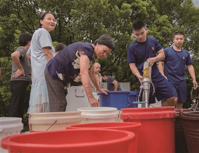 “接到报警后,我们立即调派了一辆消防车和4名人员,为徐山村送去饮用水,为了保障群众的用水干净卫生,在送水前我们对水带、水枪等进行了清洁和消毒。”县消防救援大队红星站战斗员何嘉华说。在临时取水点,当地村民早已拿着水桶、盆等各种容器排起了长龙,等待消防救援人员的到来。消防救援人员到达后迅速铺设水带,接上水枪,为村民注水。由于接水的村民多为老人,消防救援人员还主动肩挑手提将水送到他们家中。看着清澈的水注满一个个水桶、水盆,村民们也露出了开心的笑容。