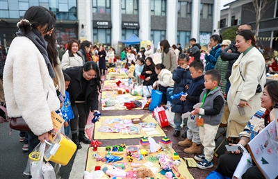 此外,跳蚤市场也是市集的一大亮点。30余位“小摊主”们将灵感与童趣巧妙融合,在摊位前铺上地毯,支起自制画板、装饰气球,营造满满的“烟火气”,让市集乐趣横生。