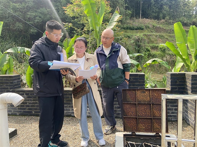 近日,县审计局深入毛垟乡、沙湾镇等乡镇的6个行政村,对农村生活污水处理设备运行情况开展现场审计。审计人员实地踏勘终端处理设施,检测设备出水水质,走访村民了解设备使用效果。通过“体检式”审计监督,切实守护畲乡百姓家门口的绿水青山。图为审计人员在沙湾镇季庄村核查污水处理设备参数。